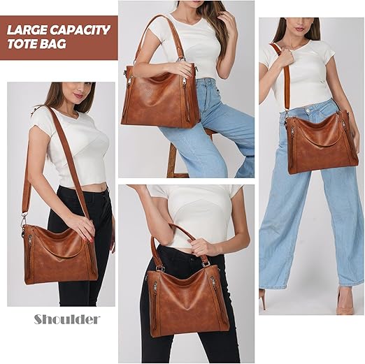Tote Bags For Women PU Leather Hobo Bags for Women Purse Stylish 2 in 1 Handbags with Shoulder Strap Ladies Office Bag